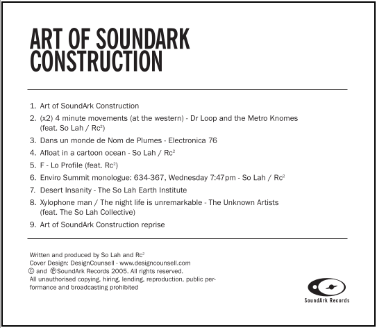 The 2nd E.P. in the ‘Leaving the Void’ Series, Art of SoundArk Construction documents So Lah and Rc²’s creation of SoundArk and further exploration of the curious creatures of Earth.